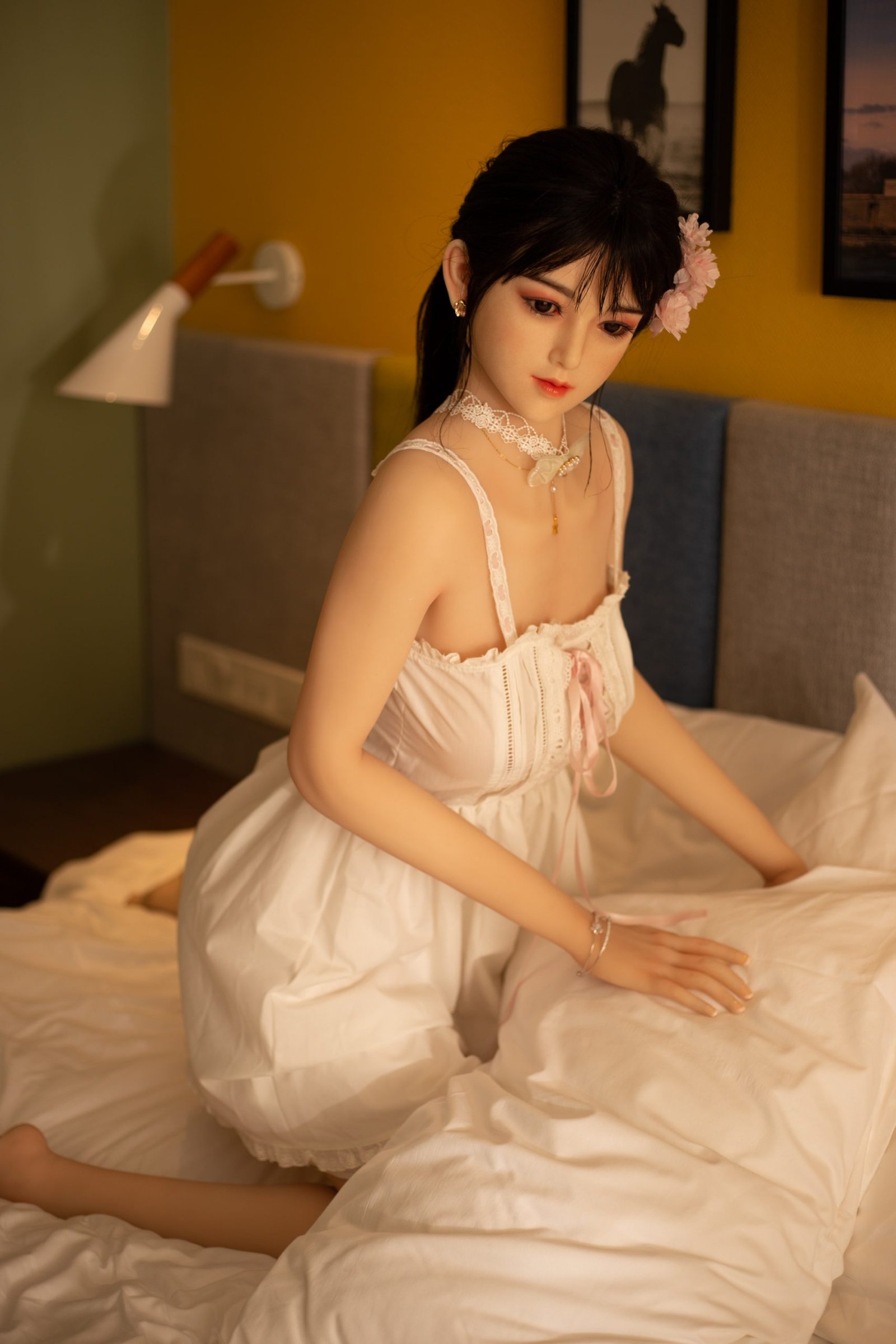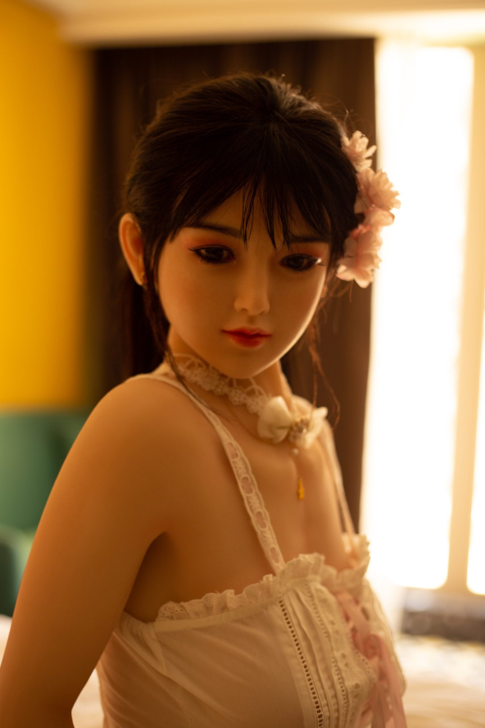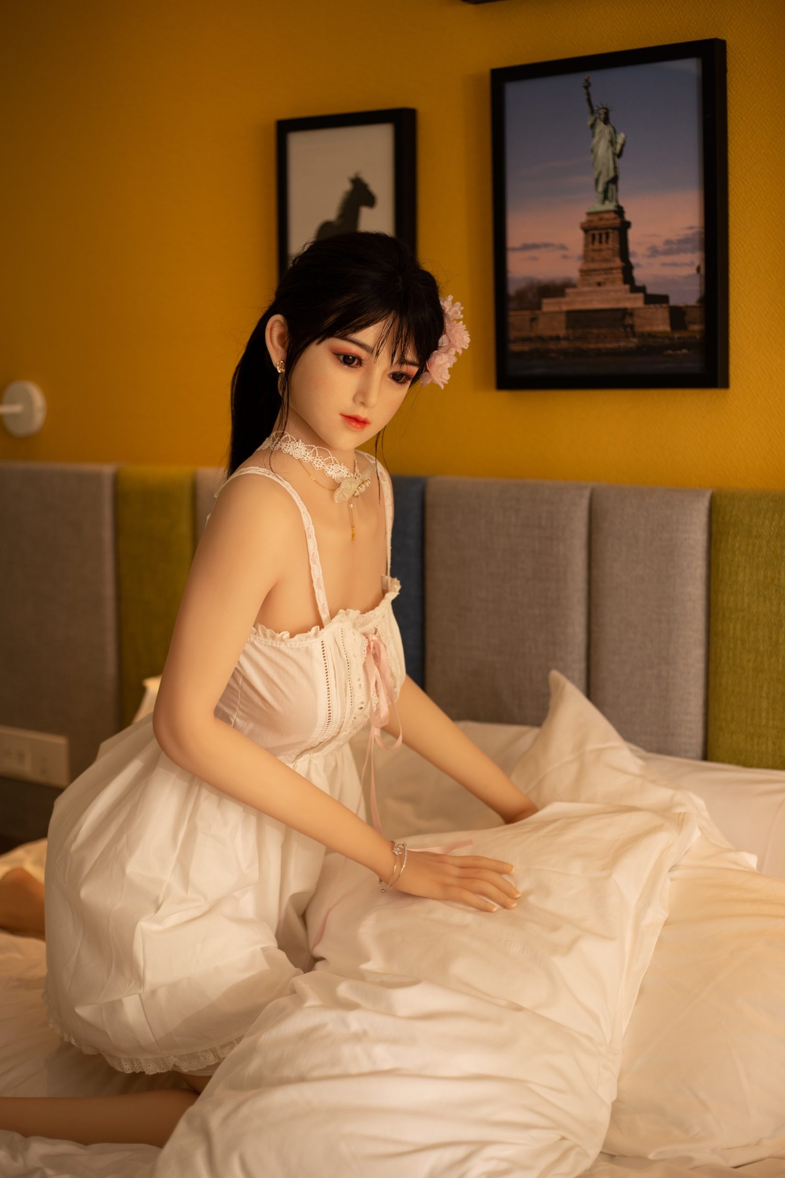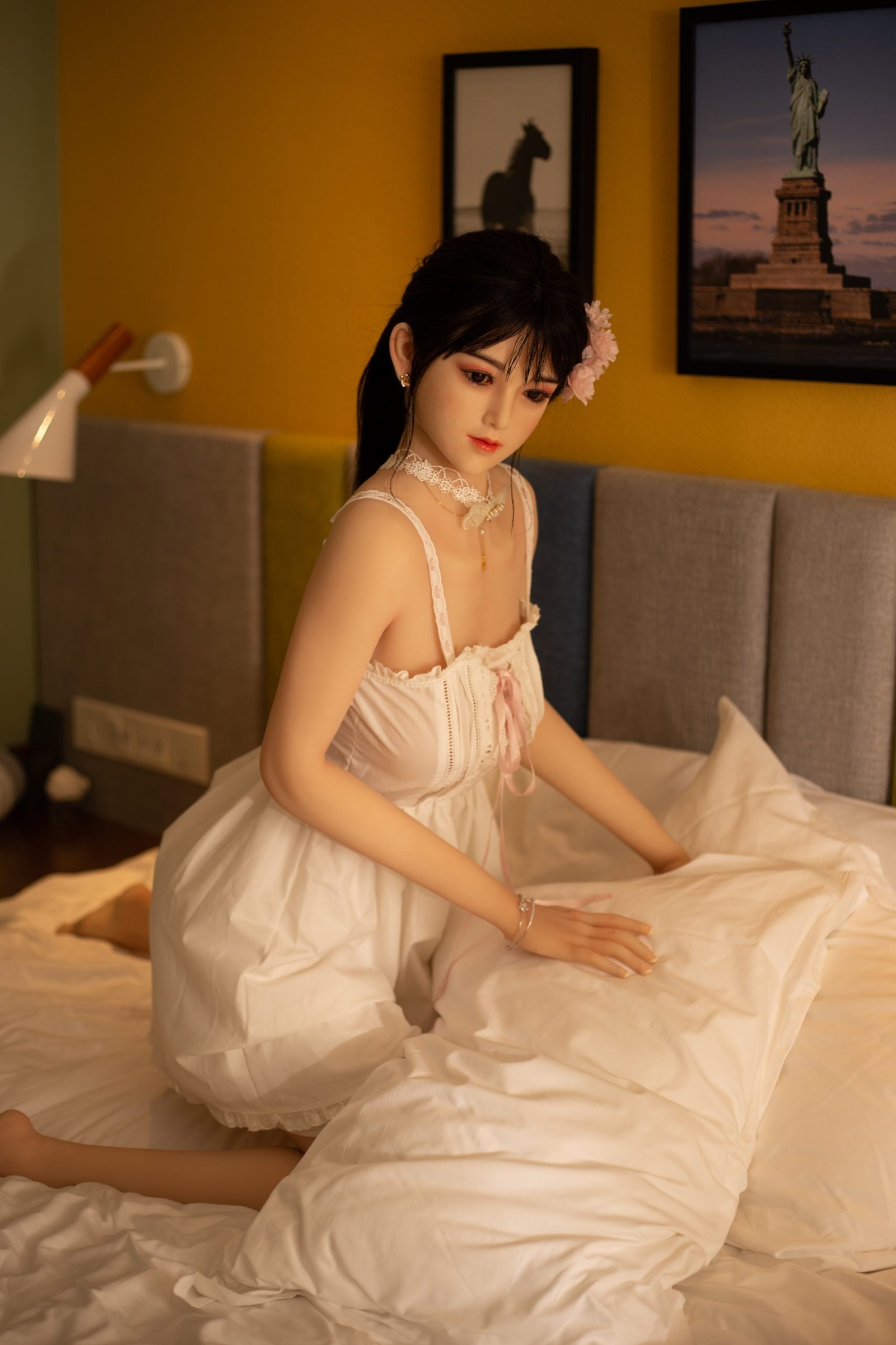 2: Cuenta con un esqueleto metálico completamente articulado y posable en su interior, lo que le permite adoptar cualquier posición como una mujer real.