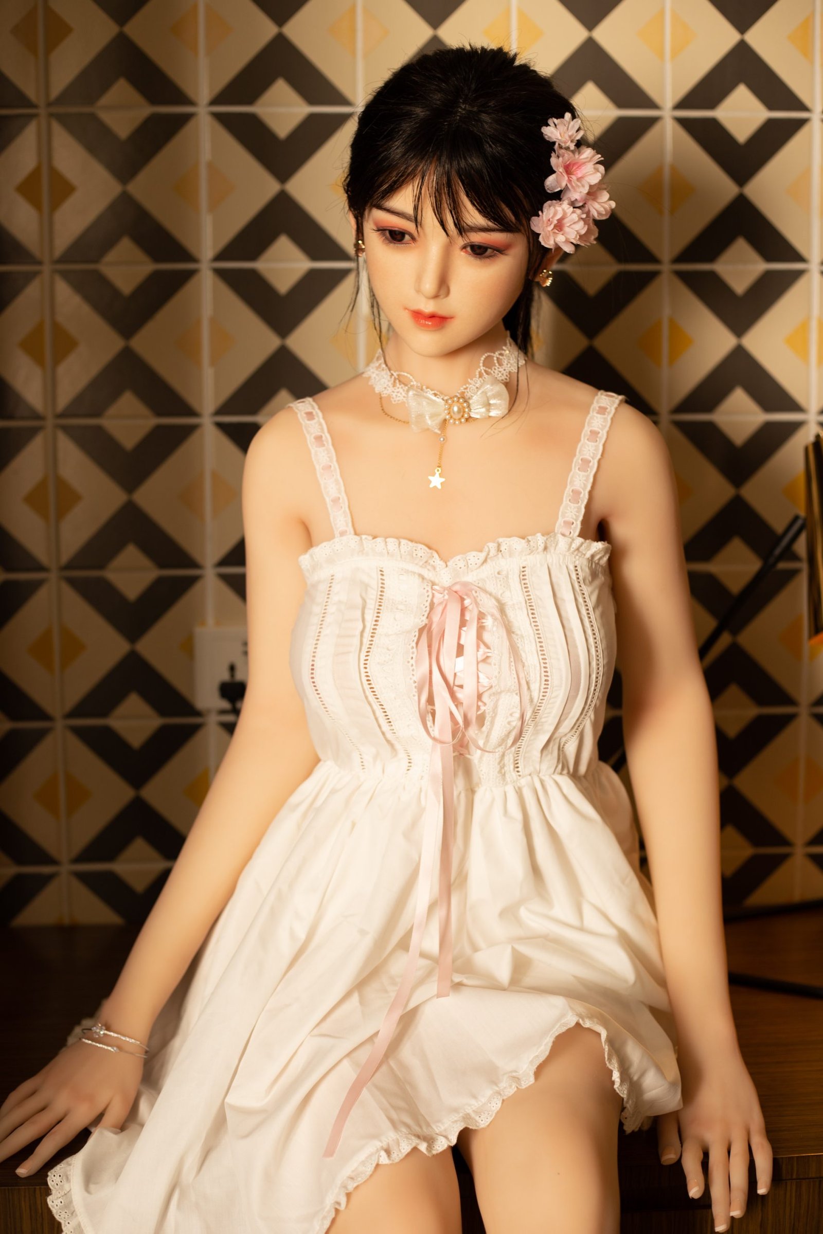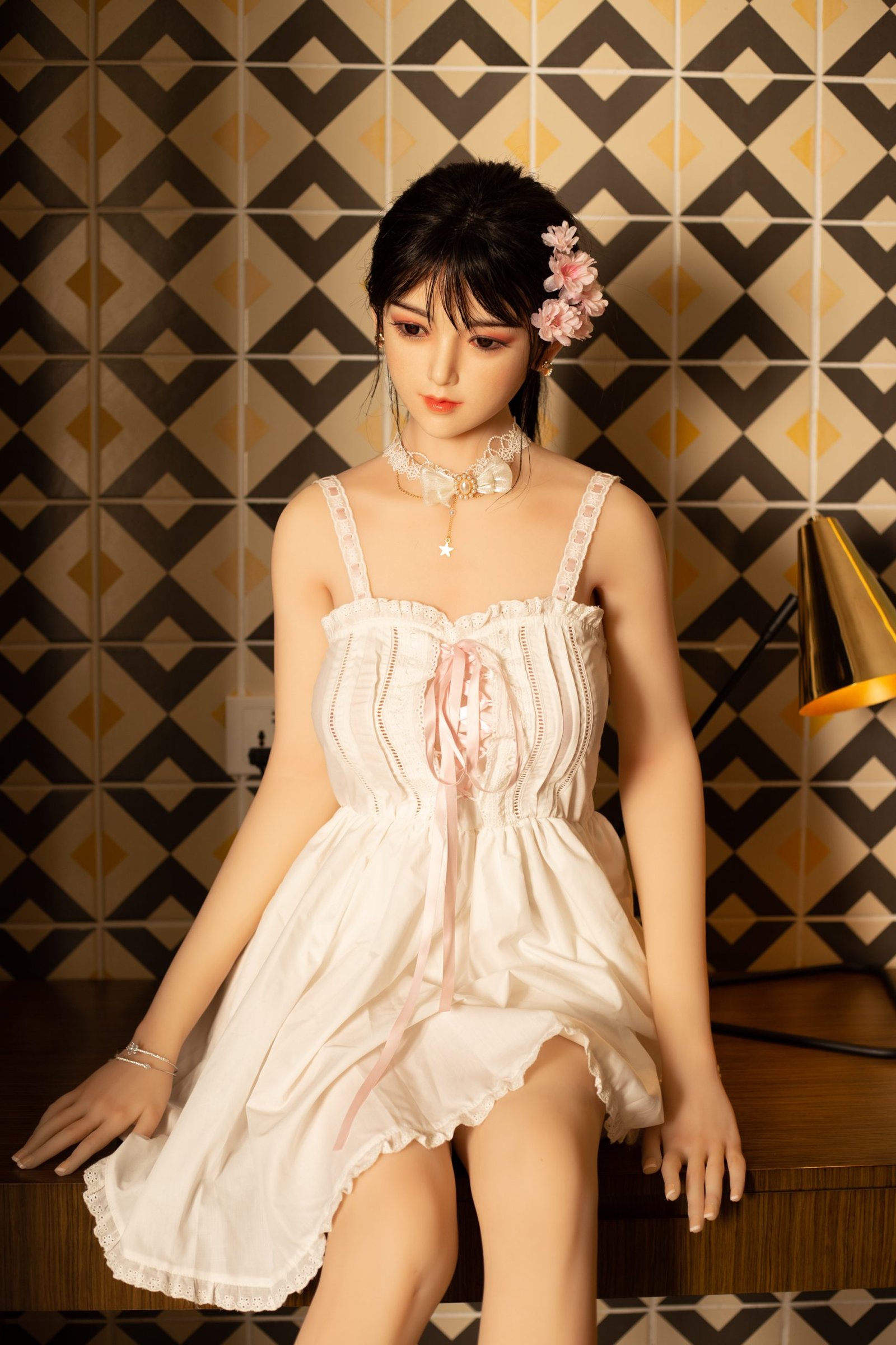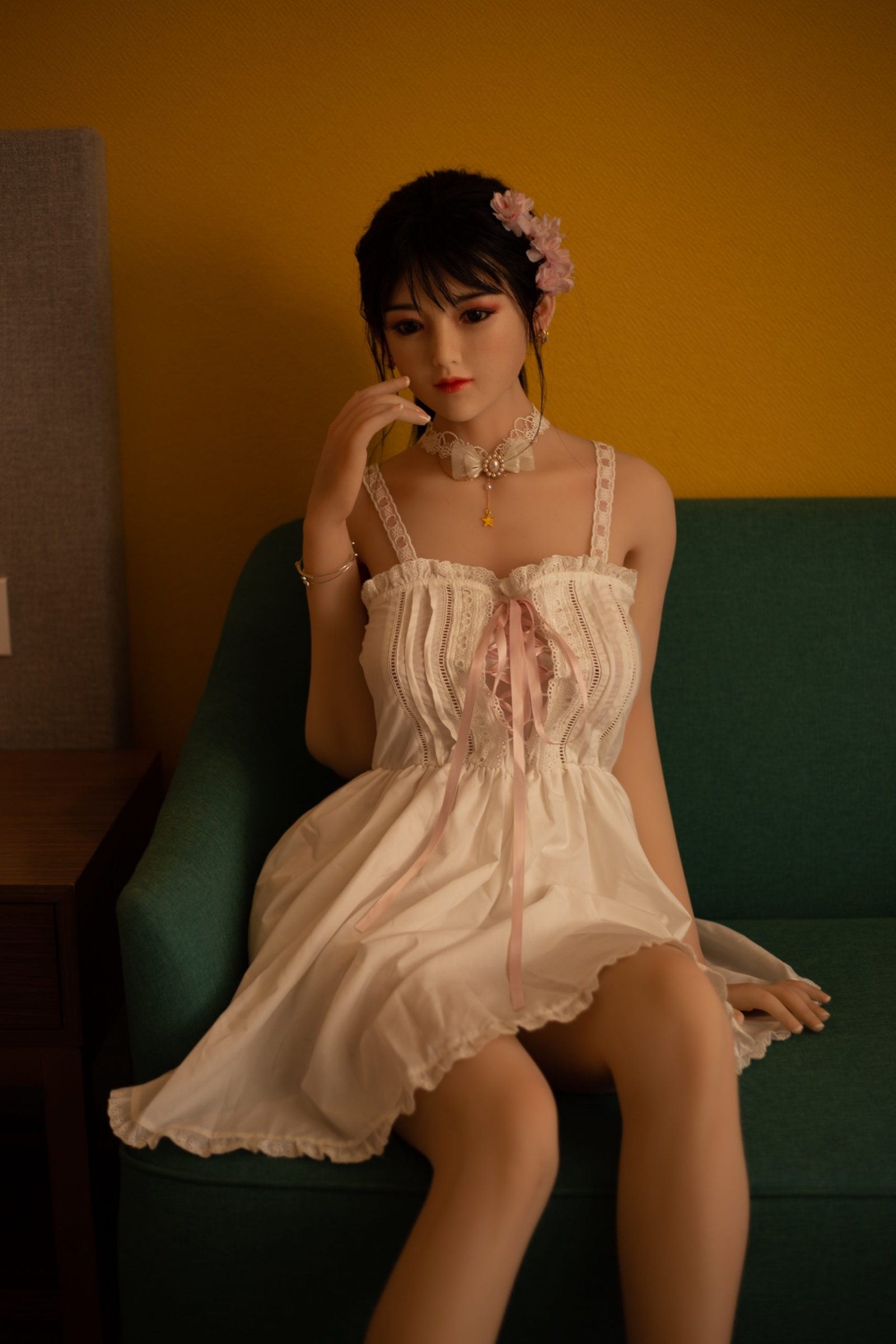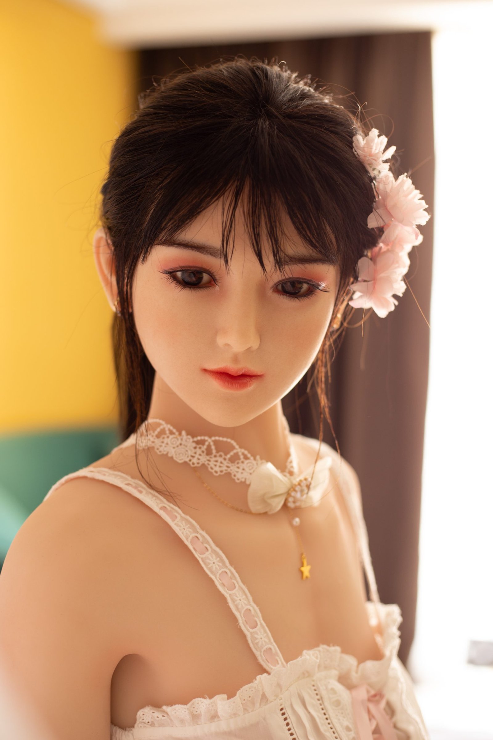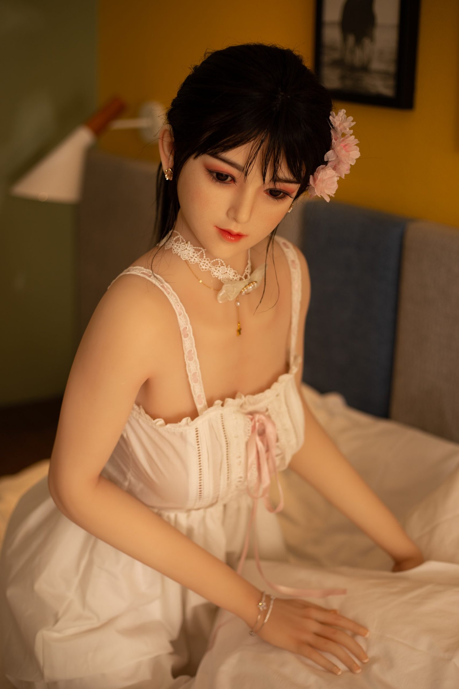 2: Cuenta con un esqueleto metálico completamente articulado y posable en su interior, lo que le permite adoptar cualquier posición como una mujer real.
